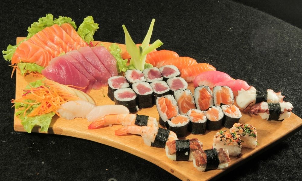 Sushi: 4 salmão, 2 peixe branco, 4 atum, 2 polvo e 4 camarão